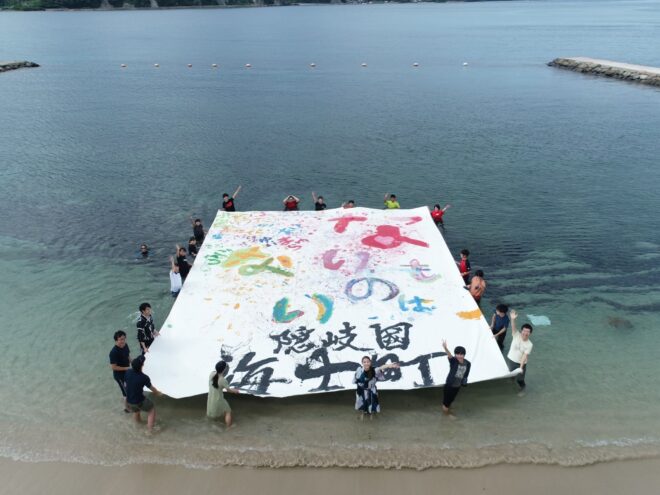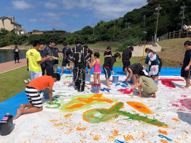 今回のメインである「巨大書道作品を海に浮かべたら」を実行!!